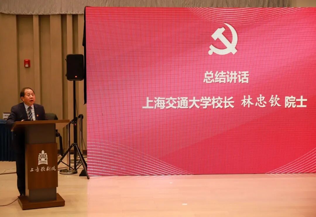 林忠钦对上海音乐学院建校95周年表示祝贺。他表示,经过双方前期精心策划,本次学习活动形式生动,内容充实,成果丰硕。他强调,上海交通大学与上海音乐学院有着深厚的历史渊源和良好的合作基础,两校在办学方向上有很强的互补性,期待双方充分发挥各自优势,紧密合作,互利共赢。上音将在美育、校园文化建设等方面为交大艺术团建设和提升学生艺术素养等工作上提供支持,交大将在科技类课程、人工智能等方面为上音学科建设、科学研究及校园信息化等工作上提供协助,希望本次签约促进双方全面合作,推动产出更多合作成果,共同培养更多德智体美劳全面发展的社会主义建设者和接班人。