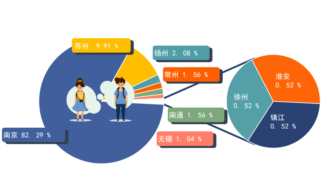 江苏省内就业毕业生地域分布的具体情况如下所示。