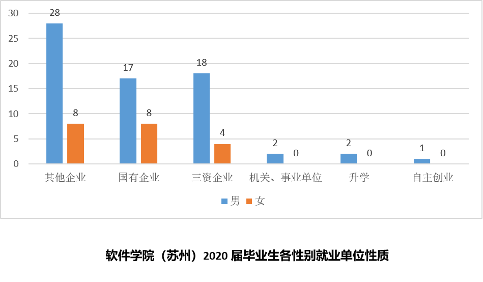 软件学院(苏州)2020届男性毕业生就业单位性质图
