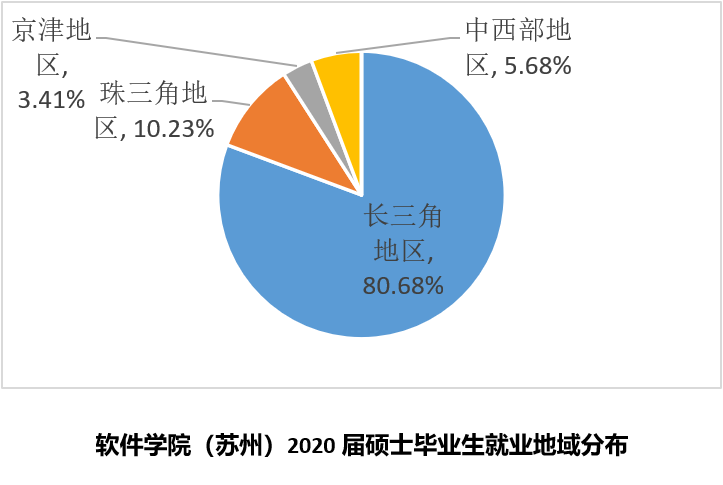 总体上看,我院2020届毕业生的就业地域主要分布在长三角地区,共有71人,占就业毕业生总人数的80.68%;其次是珠三角地区,共有9人,占比10.23%;此外,还有小部分毕业生选择在京津地区和中西部地区就业。