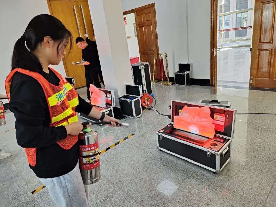 争分夺秒,按照教练员所传授的标准方法手持灭火器,“提、拔、握、压”,将火源一个个成功扑灭。