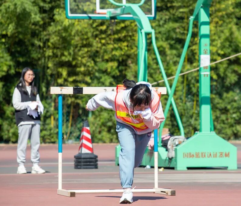 弯腰低姿前行,到达折返点后迅速将毛巾折叠3次,捂住口鼻,再低头弯腰折返,成功逃离“火场”!