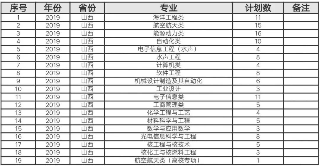 招生计划|哈尔滨工程大学2019年山西省招生计划