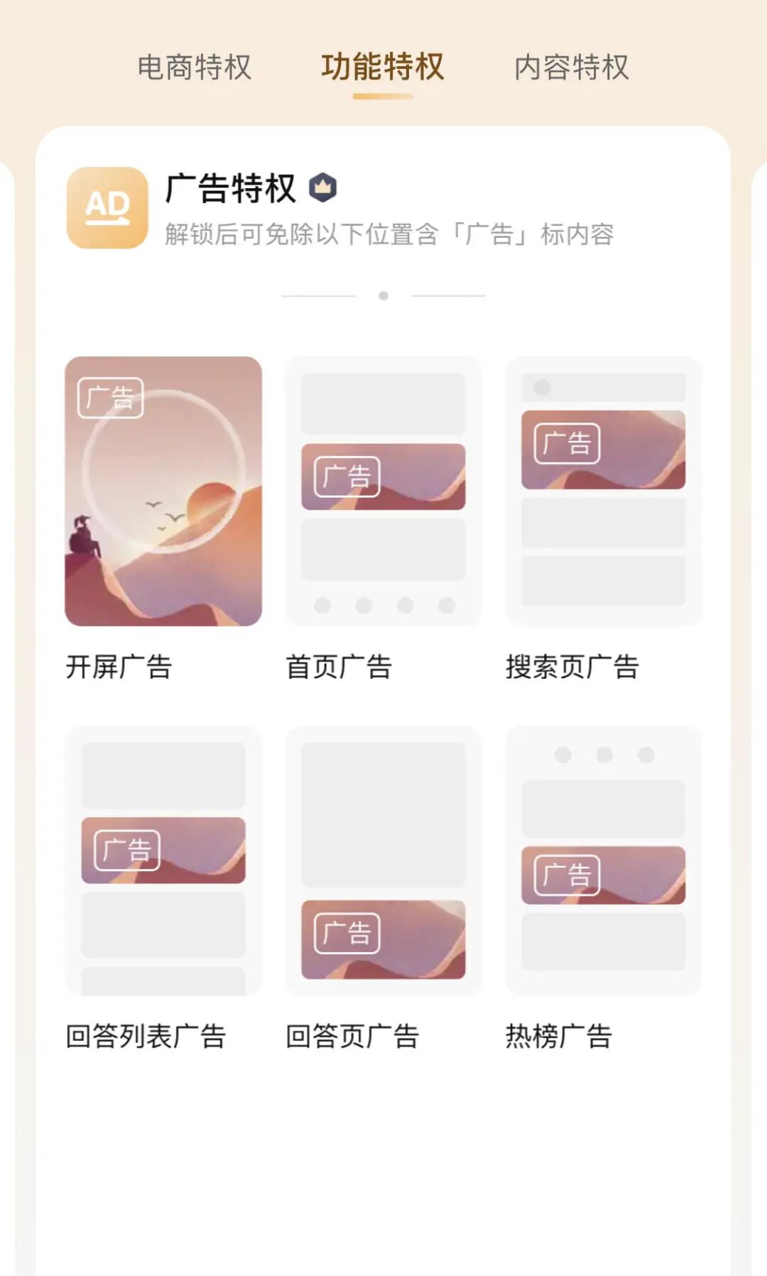 广告特权:免除开屏/首页/搜索页/回答列表/回答页/热榜广告
