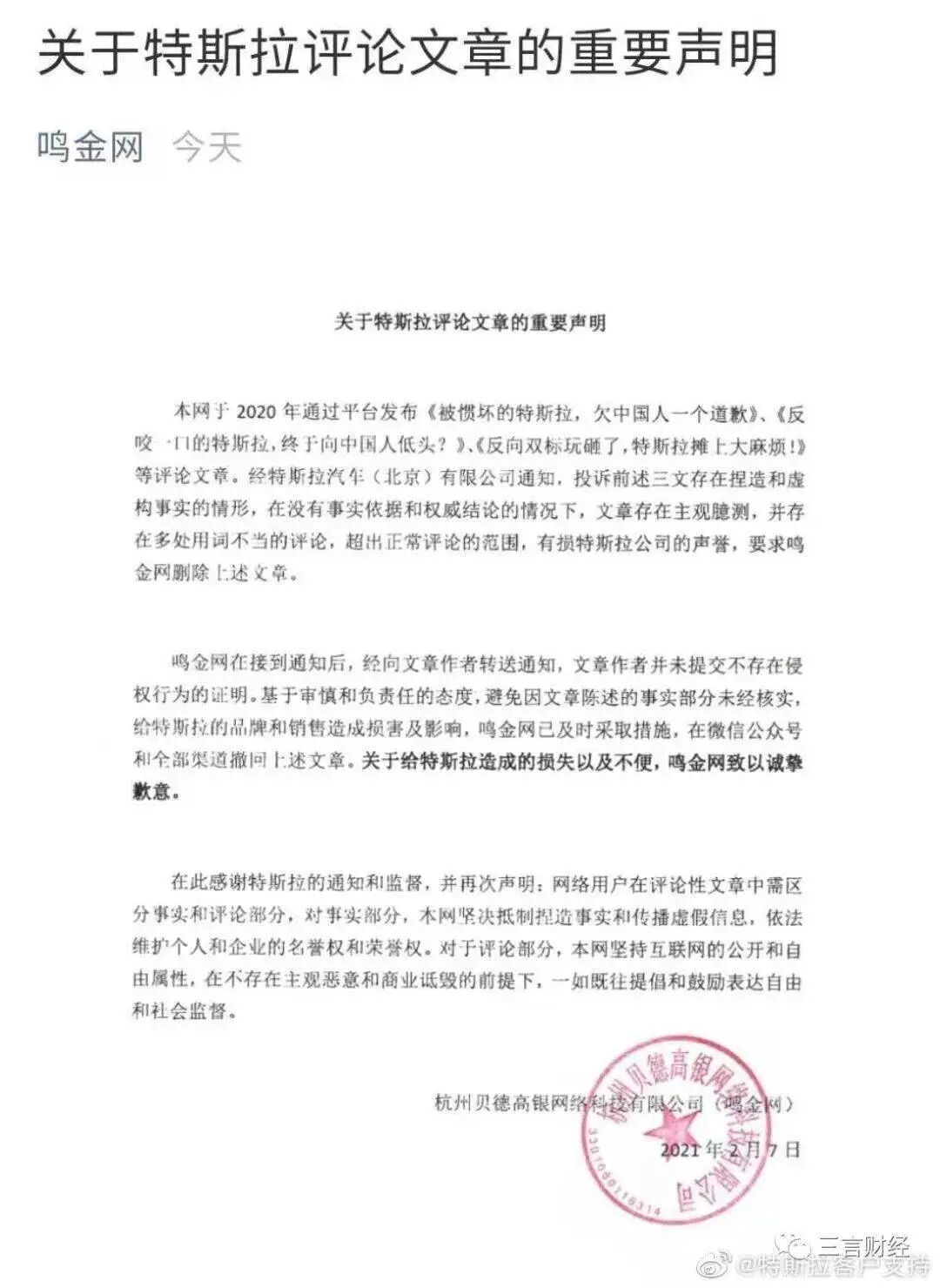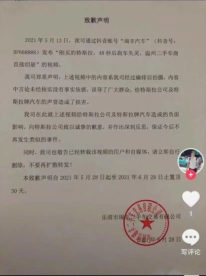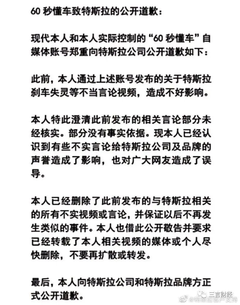 至于说“传言”中提到的“道歉信是特斯拉写得”,特斯拉回应称: