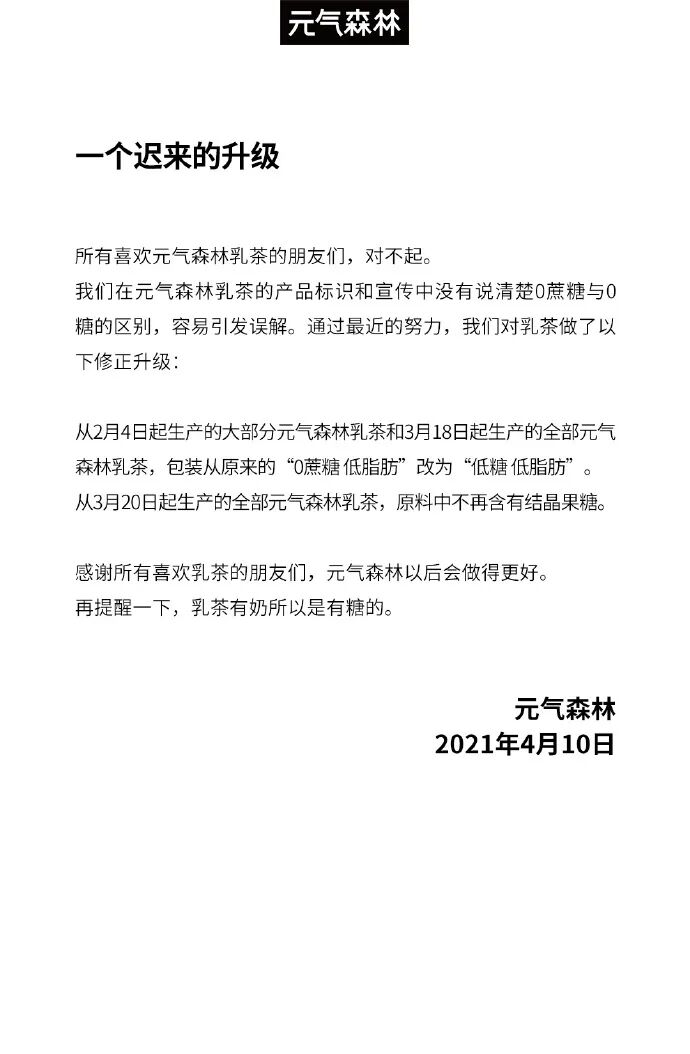 实际上,这已经是元气森林第二次公开的、主动的说乳茶这款产品的“0糖”问题,上一次是在今年1月10日,但没上热搜。为啥呢?就是因为第二个“大坑”。