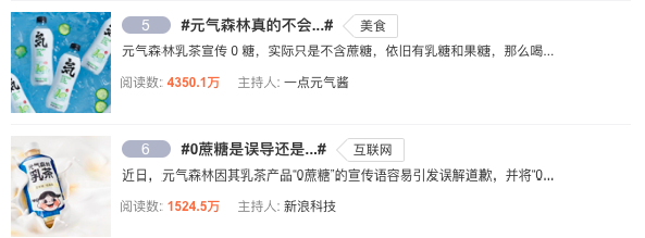 周日到周一,元气森林的热搜,一直挂在微博。