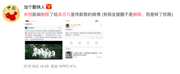 央视新闻删除吴亦凡歌曲微博(划重点)