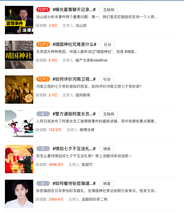 至于微博热搜第一条提到的#曝光霍尊聊天记录违法吗#,大叔本人其实也好奇,但更佩服的是微博小编对新闻热点的把控力,阿里的事,阅读量只有722万,就能排第四。