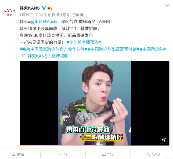在韩束官宣解约吴亦凡之后的第二天,韩束的新品就如期出现在李佳琦的直播间,双方开启了新一轮的营销。