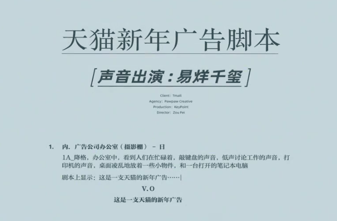 天猫虽然也请了代言人易烊千玺,但后者没有出镜,只是声音出演。