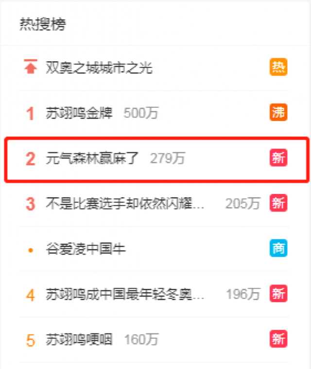 就在伊利和蒙牛因为“抢”冬奥冠军代言人,争得不可开交之时,元气森林杀出重围,前几天,喜提了一个热搜——#元气森林赢麻了#