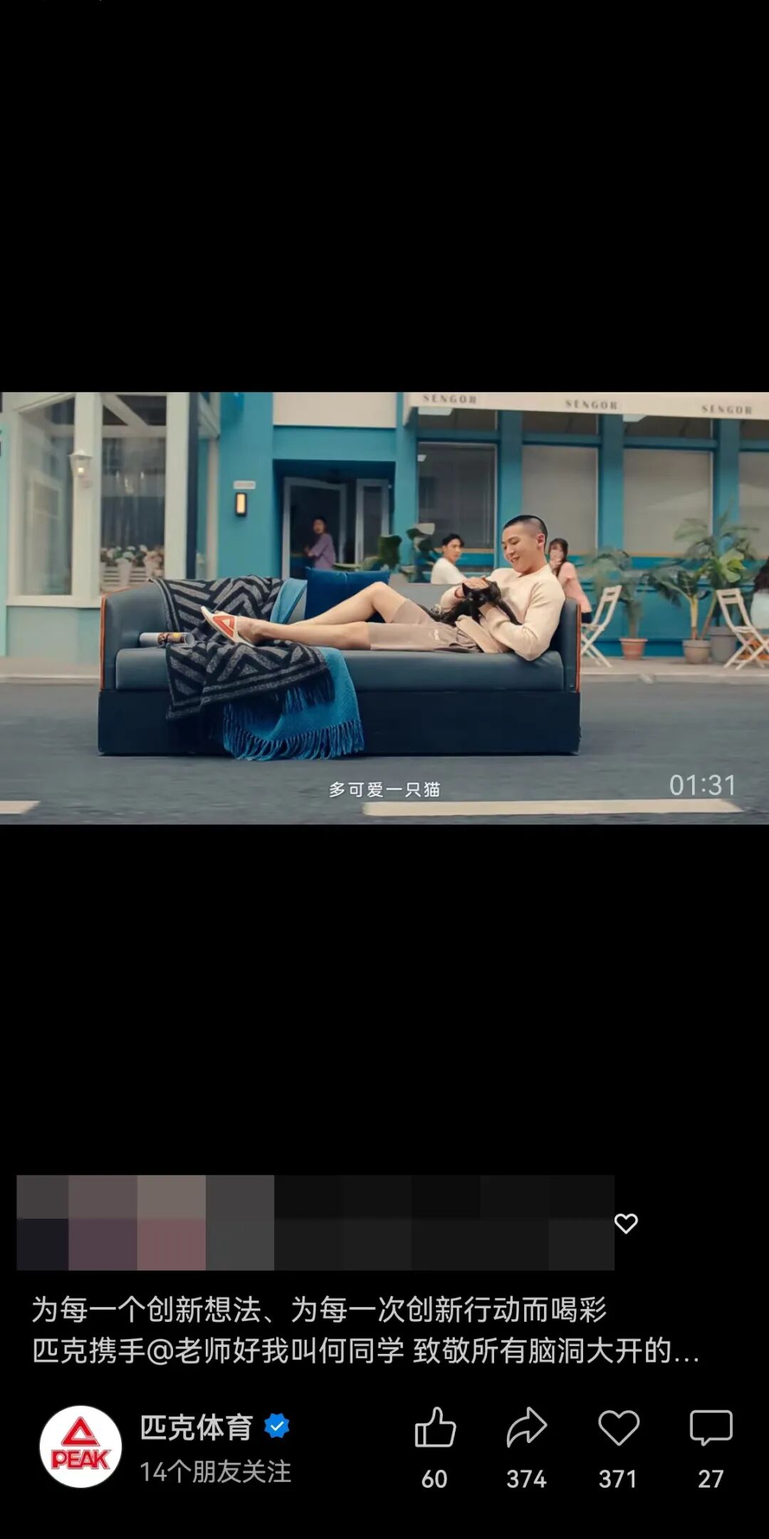 匹克和科技数码up主何同学来了一次“脑运动”,画面和场景都挺有创意,尤其是一开始那个用床垫做多米诺骨牌的创意,但中间的文案,实在是有些衔接不起来,何同学的表现呢,还是素人感满满。