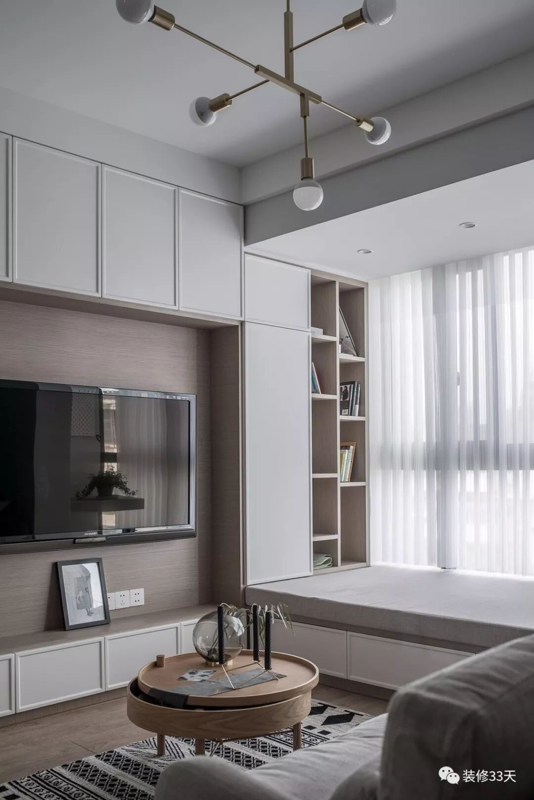 ▲ 将电视背景墙的展示柜做进榻榻米休闲区,与自然光结合,成为整室一景