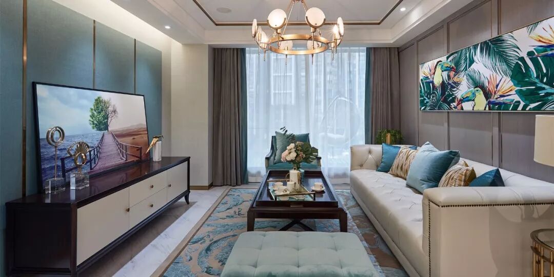 恒彩设计其他作品推荐,点击下图查看89平简美三室 清新孔雀绿样板间