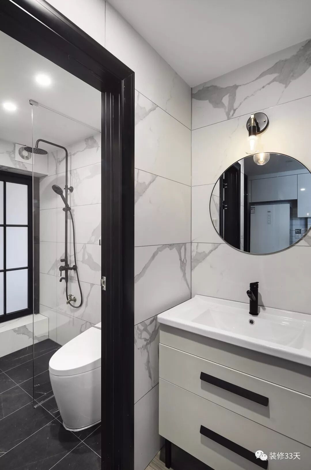 ▲ 卫生间干湿分区,提高使用效率,黑白灰的配色简洁又经典