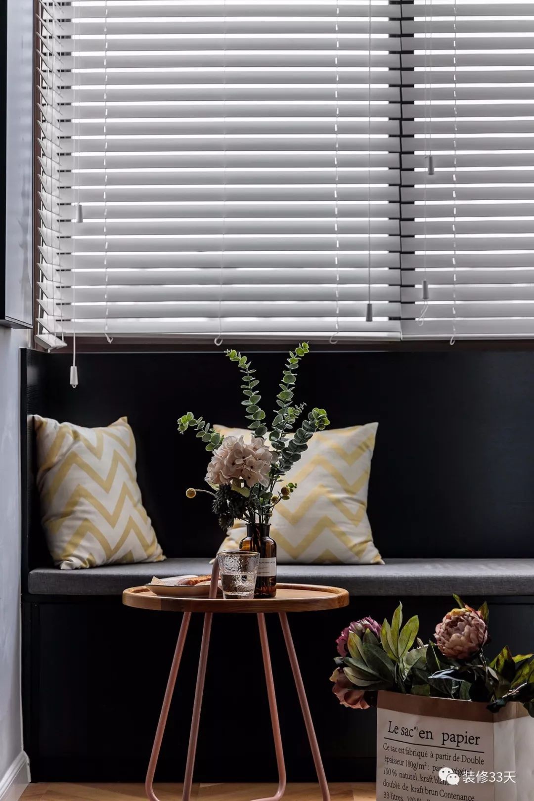 ▲ 打通不必要的墙面束缚,拓展就餐区域,鱼骨拼木地板搭配黑白灰的空间格调,餐桌另一边同样做一组漂亮的收纳