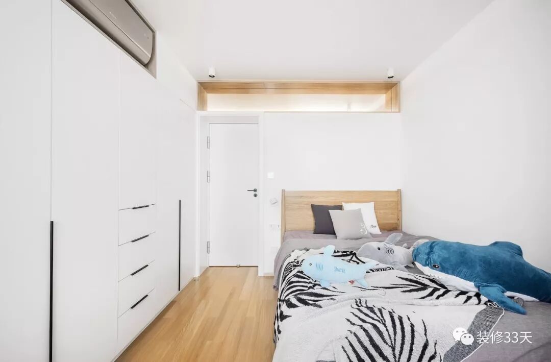 这里要介绍一下普通挂机的「背出」安装工艺,台湾案例中常见到。就是把挂机的管孔直接打在了空调背后的墙上,让管子直接被遮住了,这样墙上就少了管子,会显得干净一点,加上有的挂机外形设计得也不错,相对颜值就提升不少。