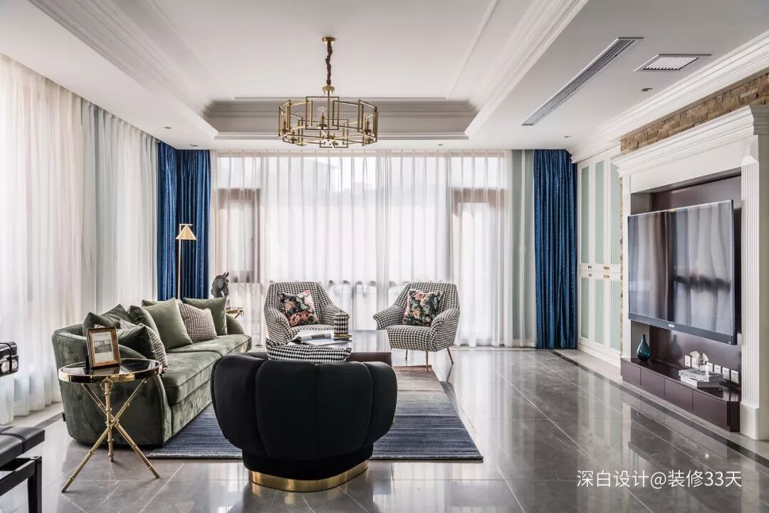 深白设计其他作品推荐,点击下图查看110平美式混搭三室 客厅+书房开阔空间