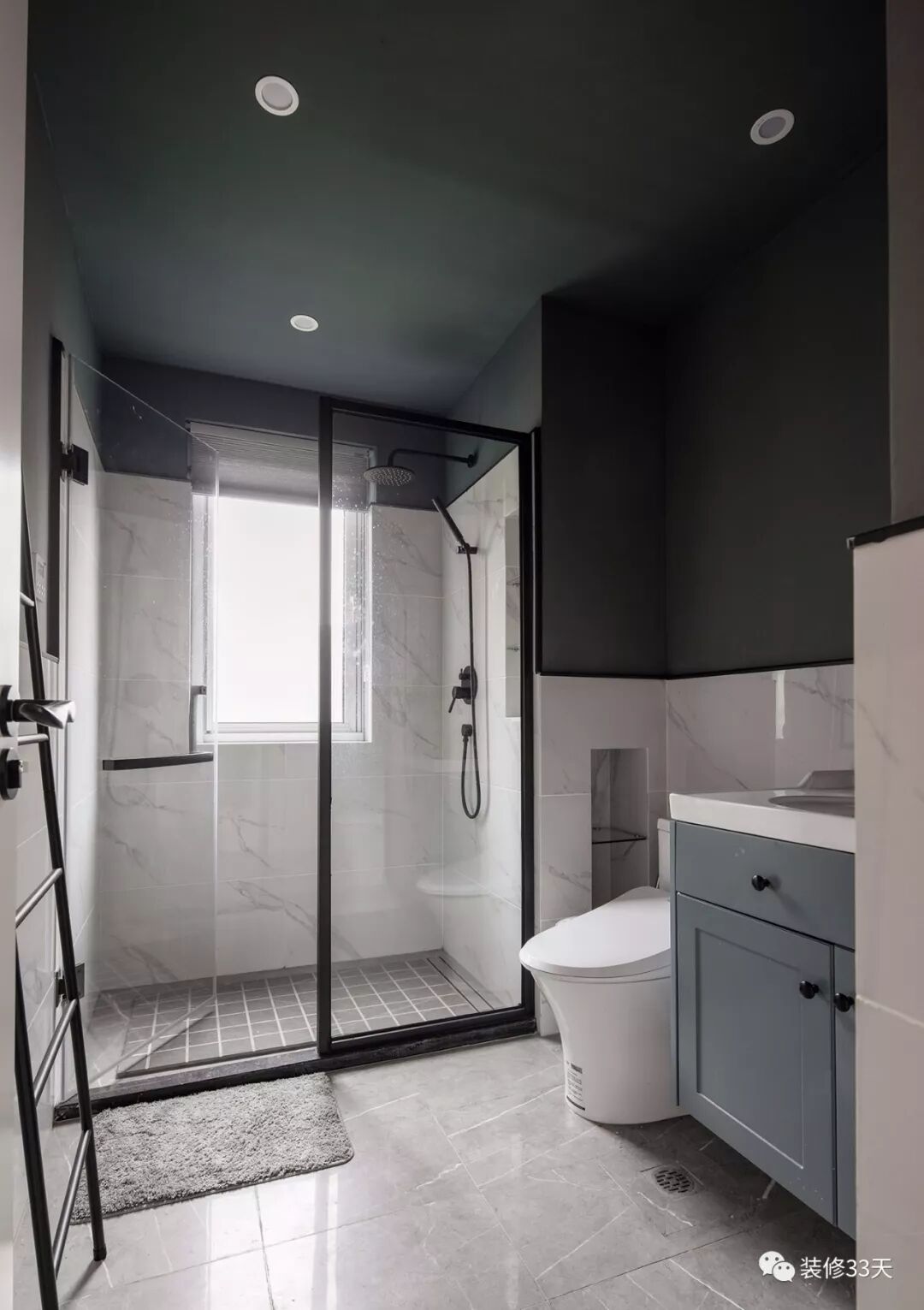▲ 客卫空间通过蓝+灰+白的基调,打造出时尚美感
