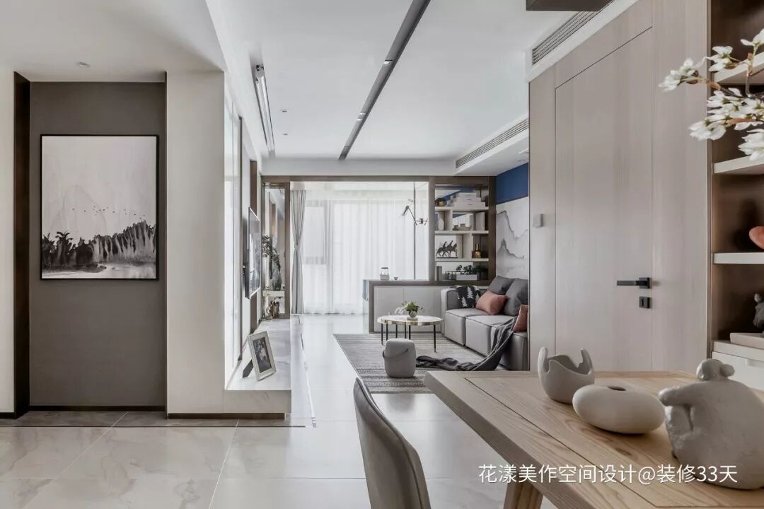 ▲ 项目面积109平,金领三口之家通过次套空间设计,完美实现当初对居住空间的最初想法,现代感中融入轻中式元素,入户以山水挂画作玄关端景