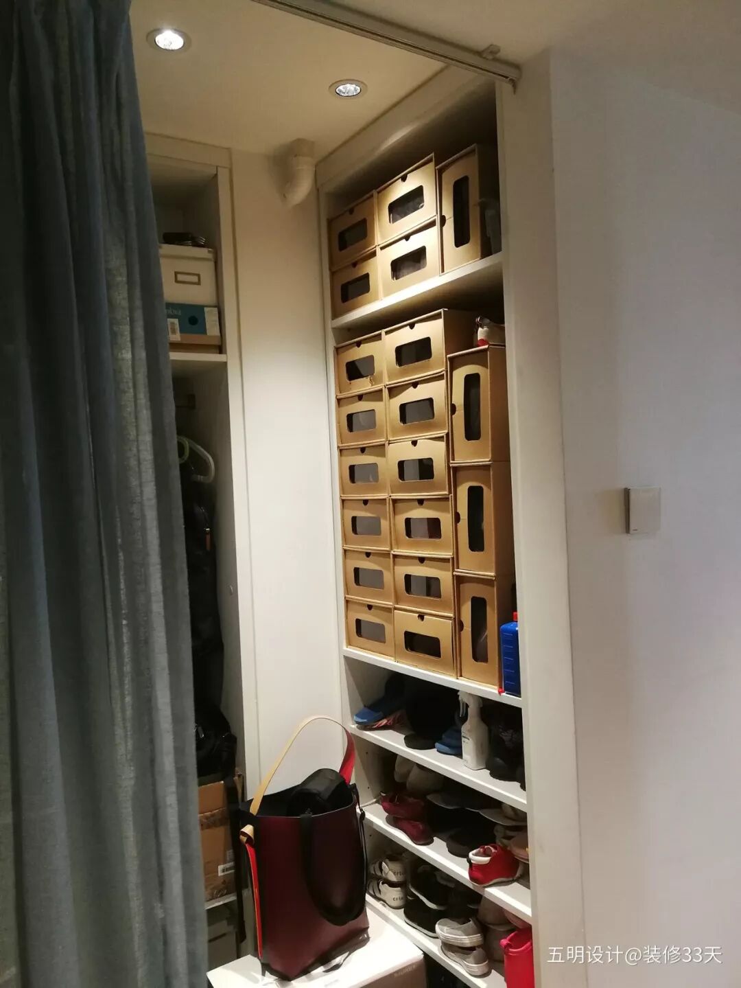 ▲ 在进门处,左手边空置处一个小小的空间,装上灰色的拉帘,变身成小而精的衣帽间