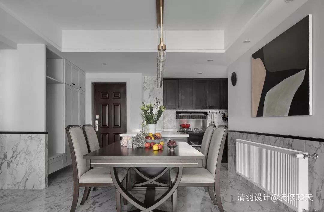 ▲ 厨房料理台延伸出岛台功能,与餐桌结合规划室内格局,品质家具搭配精致吊灯,墙面的装饰画全部出自业主之手