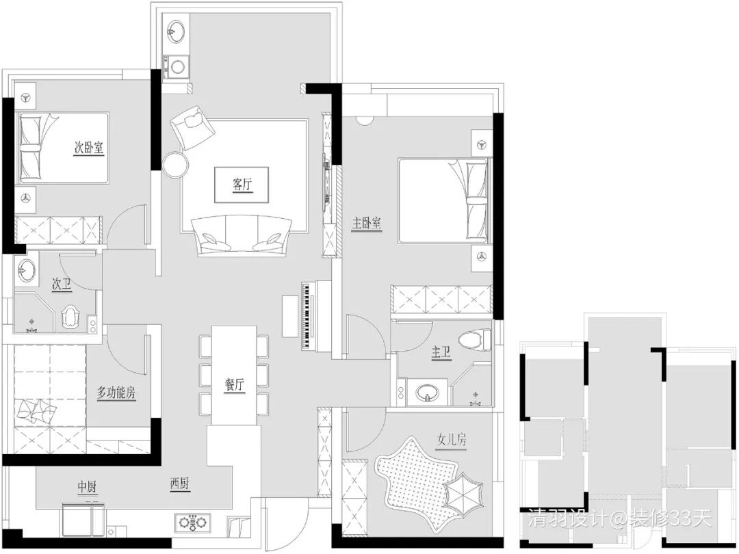 ▲ 多功能房,打造浅灰色榻榻米连接大衣柜与书桌书架,满足不同的生活所需