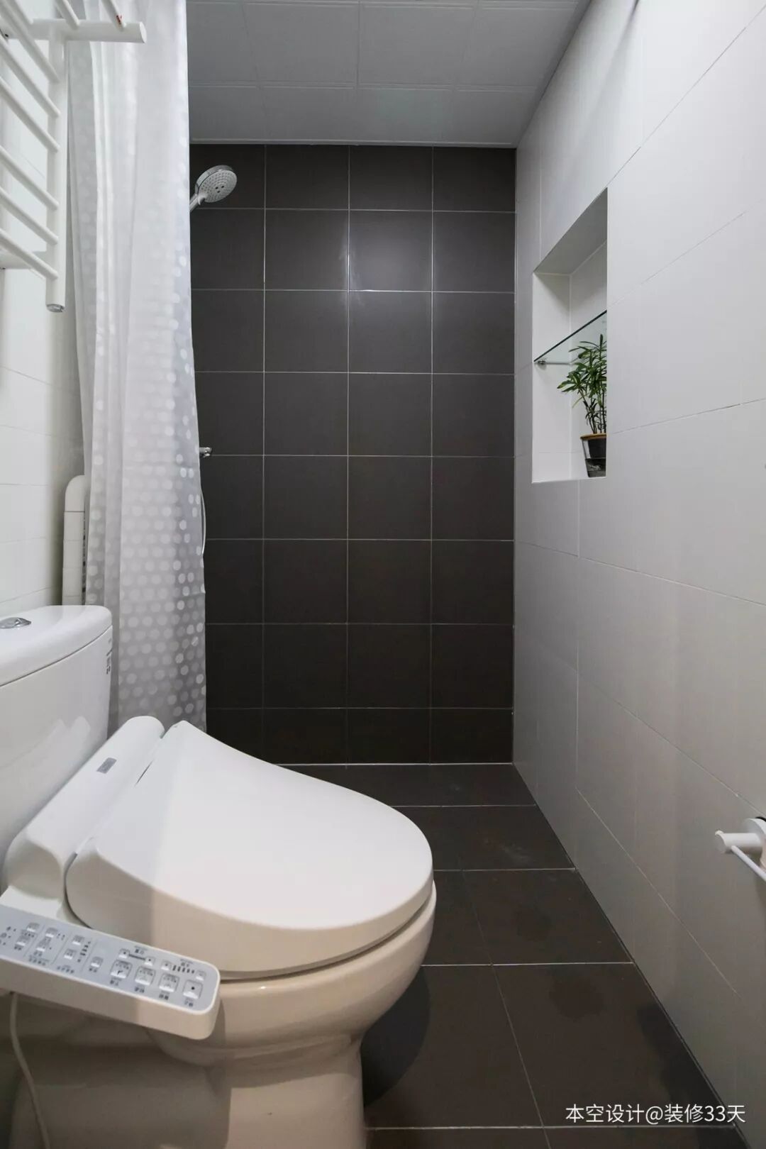 ▲ 卫生间内增加淋浴区,用浴帘隔断不占空间,墙面设计置物壁龛