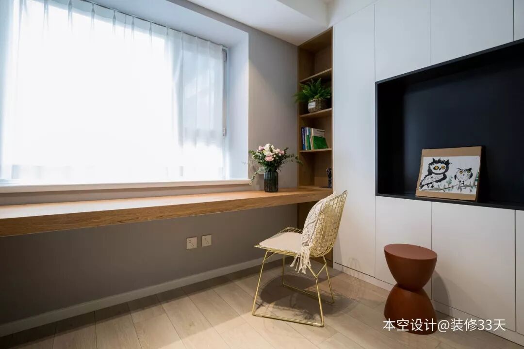 ▲ 利用靠窗位置设计隔板书桌,实现小书房的功能,足够一家三口同时使用