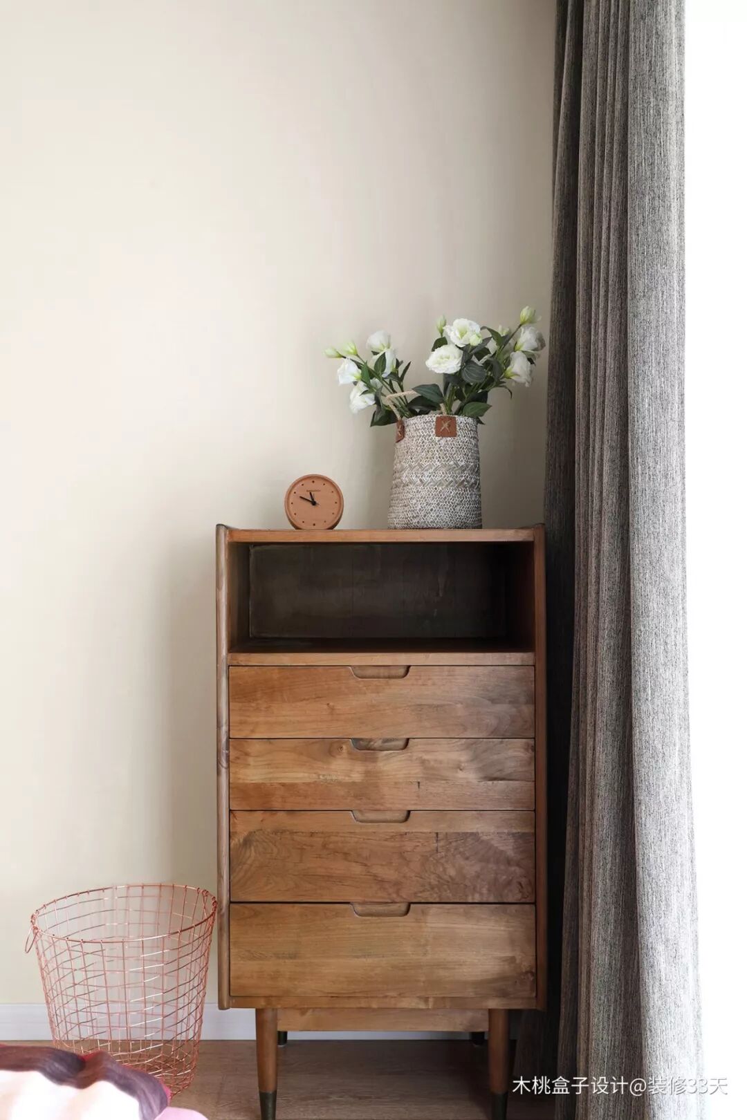 ▲ 卧室简单而不失温馨,床头定制墙布意境悠远,墨绿色的床头压低重心