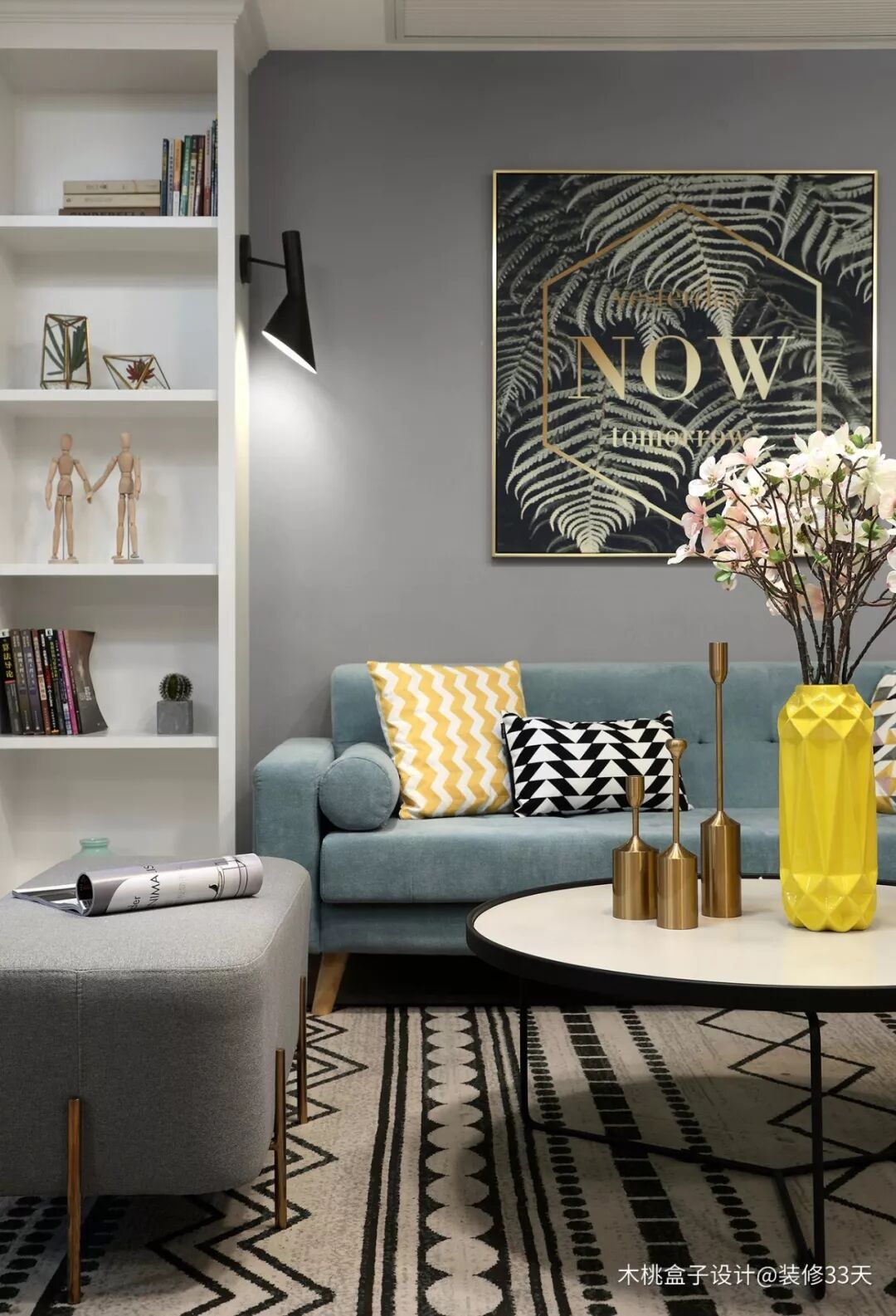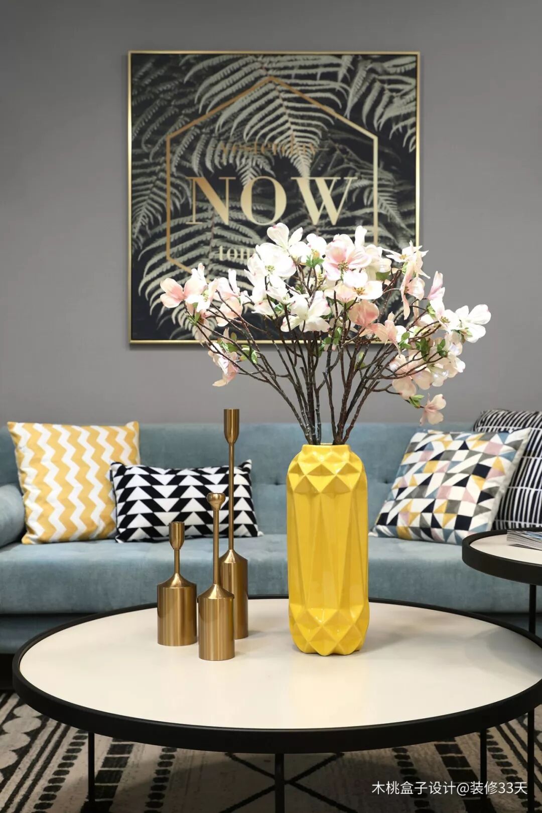 ▲ 客厅选用白色、灰色,局部跳色软装饰品丰富视觉,呼应主题风格