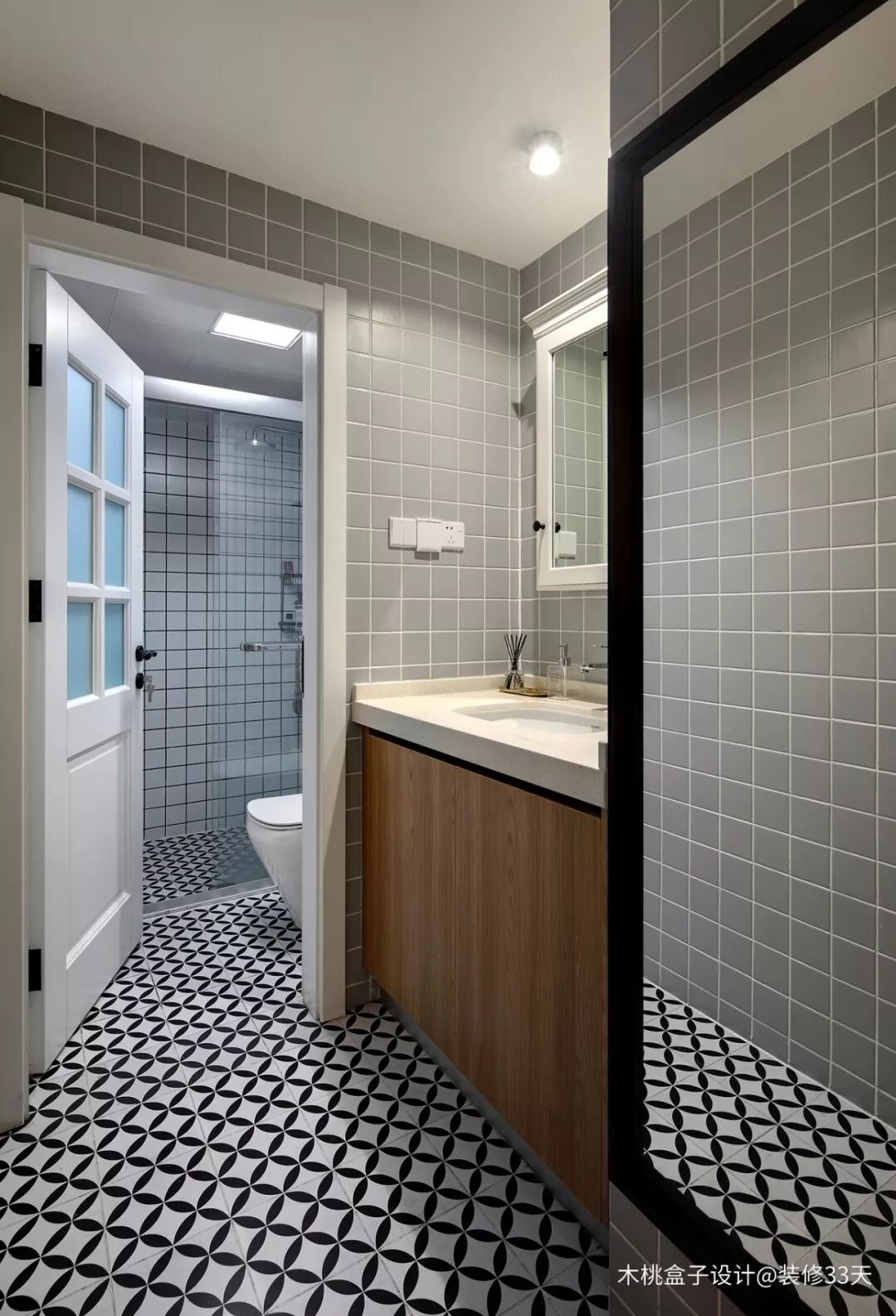 ▲ 干湿分离卫生间,提高使用效率,统一小方砖配合几何图案地砖强调整体风格