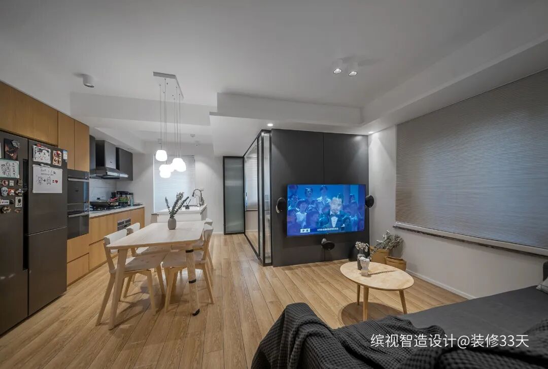 ▲ 餐厨边上的书房区采用长虹玻璃折叠门,可灵活的调节空间模式