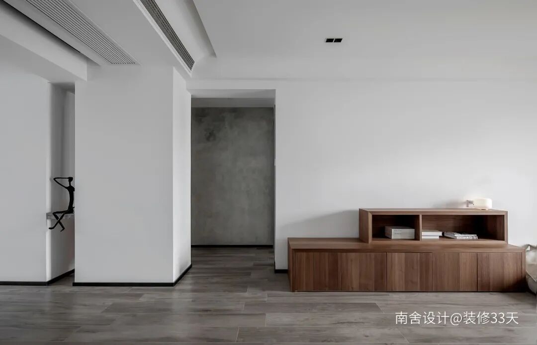 ▲ 入户视角,端景水泥漆将白色的墙面拉开距离,大量的留白让空间回归它的本质,让它有呼吸的空间