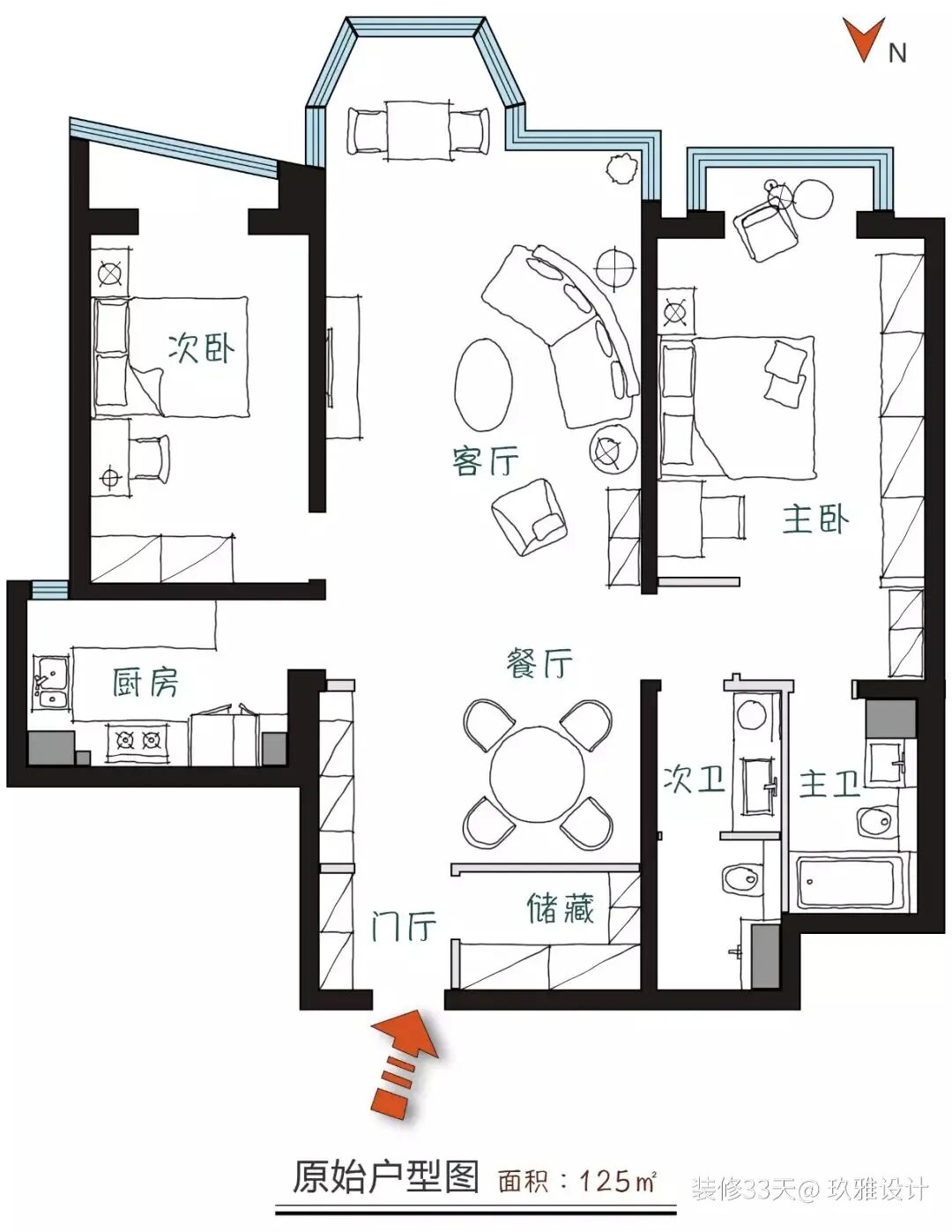 ▲ 建筑面积125平,造价41万(硬装11万+主材软装30万),项目地址:北京朝阳区-珠江帝景,完工时间:2019年年底,女业主喜欢复古风,设计师把复古的元素应用到这套案例中,最终呈现出成熟精致的复古魅力风格