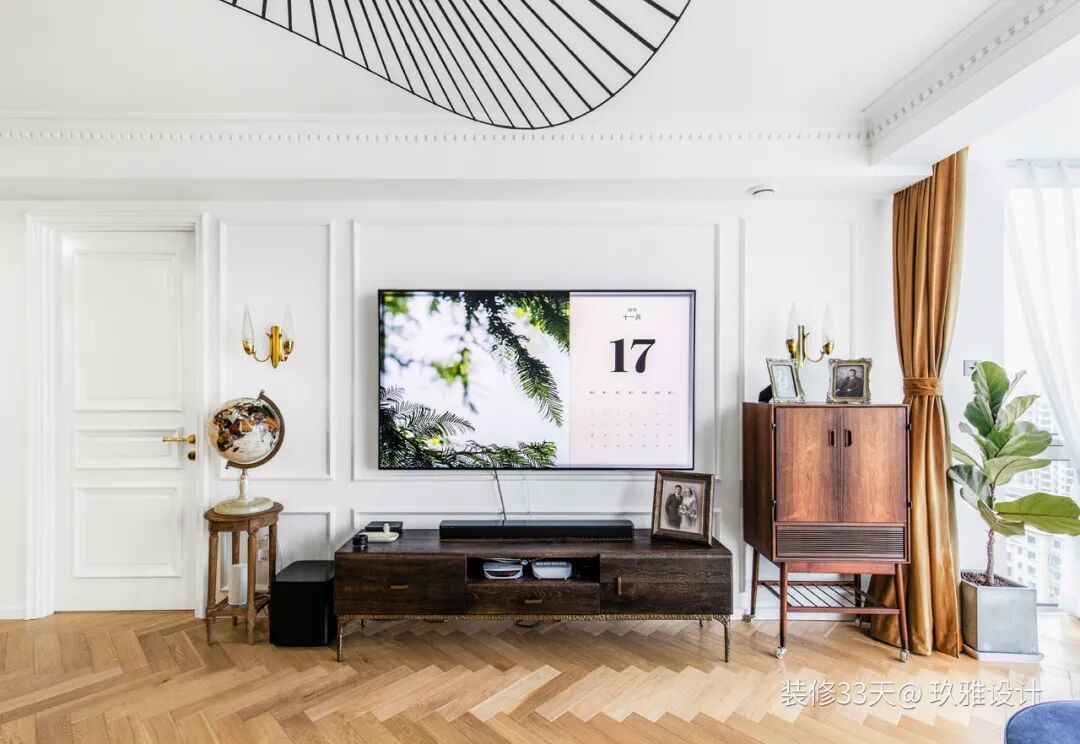 ▲ 电视背景的造型与沙发背景呼应,复古感的塑造主要依靠软装,人的目光会情不自禁的聚焦在这些饰品和家具上