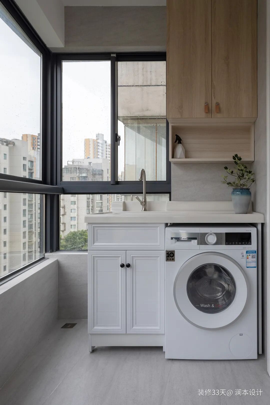 ▲ 阳台一侧规划洗衣区,增设吊柜补充收纳