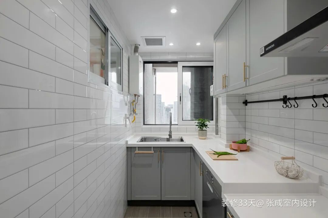 ▲ 厨房改造后大大增加了操作台面,高低台设计,洗菜不弯腰烹饪不抬手,大面积白色调让小空间视觉放大