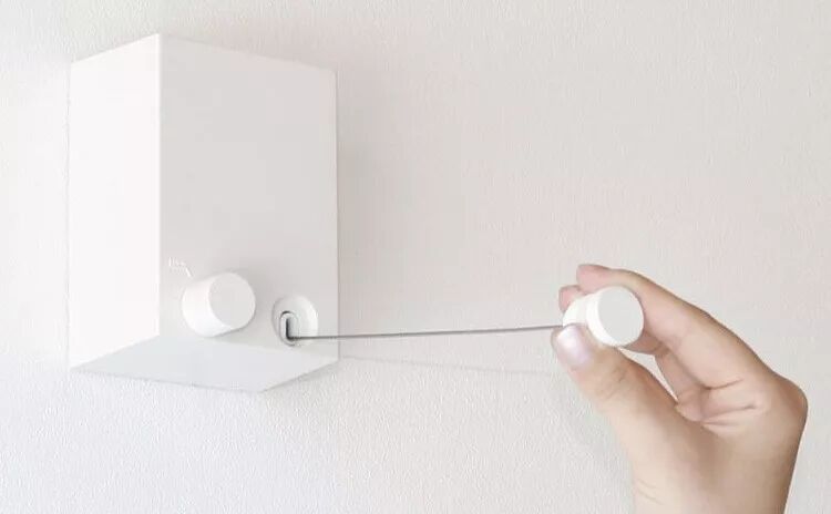 确实颜值很不错,就是一个白色小盒子固定于一边墙上,另外一边固定一个扣子,然后钢丝从盒子里拉出来,扣到对面墙上的扣子上就行。网上四五百一套,当然,国内也有类似的仿造产品,价格一百多。
