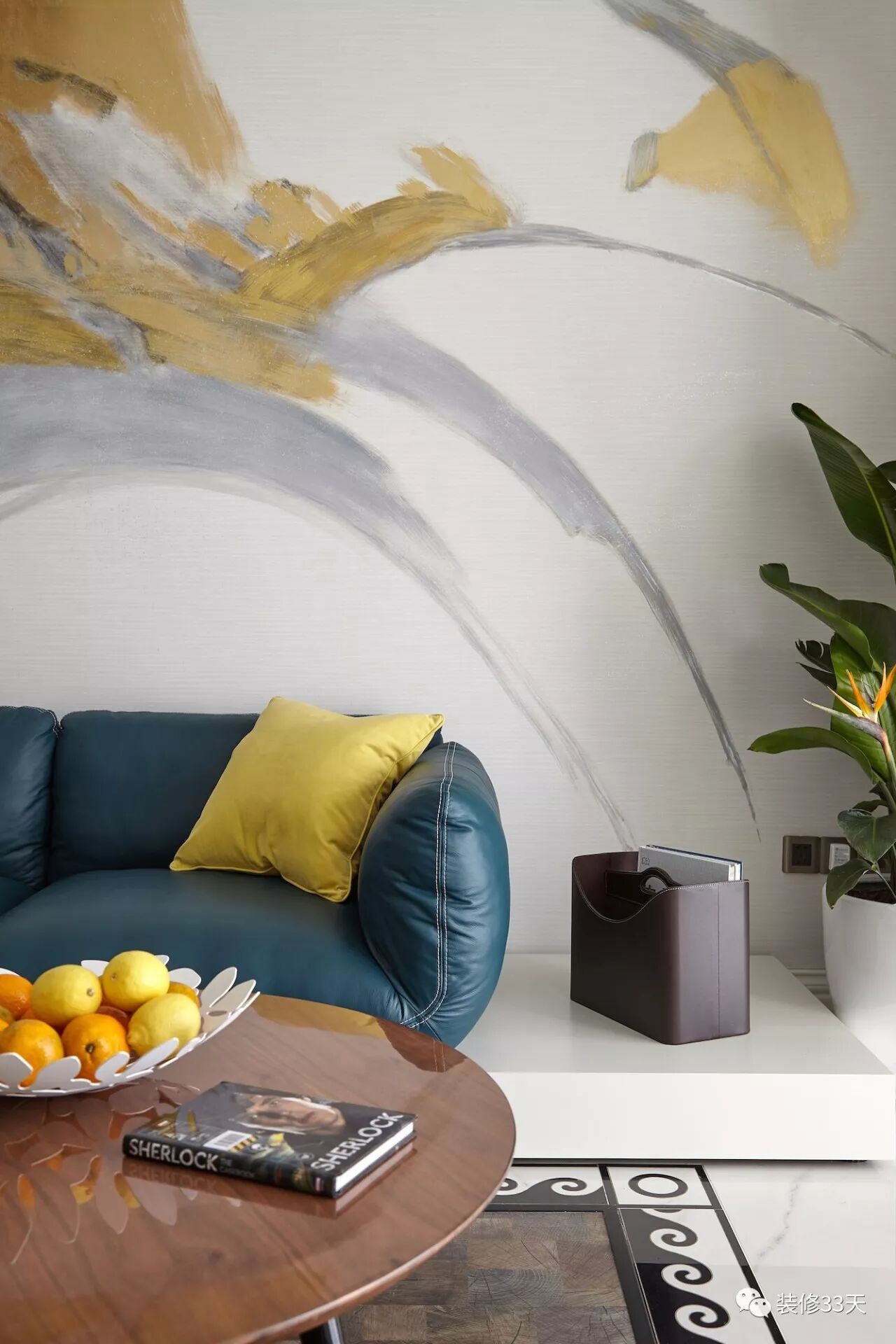 ▲ 沙发背景墙,金灰添彩,宛若素白新纸上撇出两笔,豪放却不张扬,彰显低调的雅致感