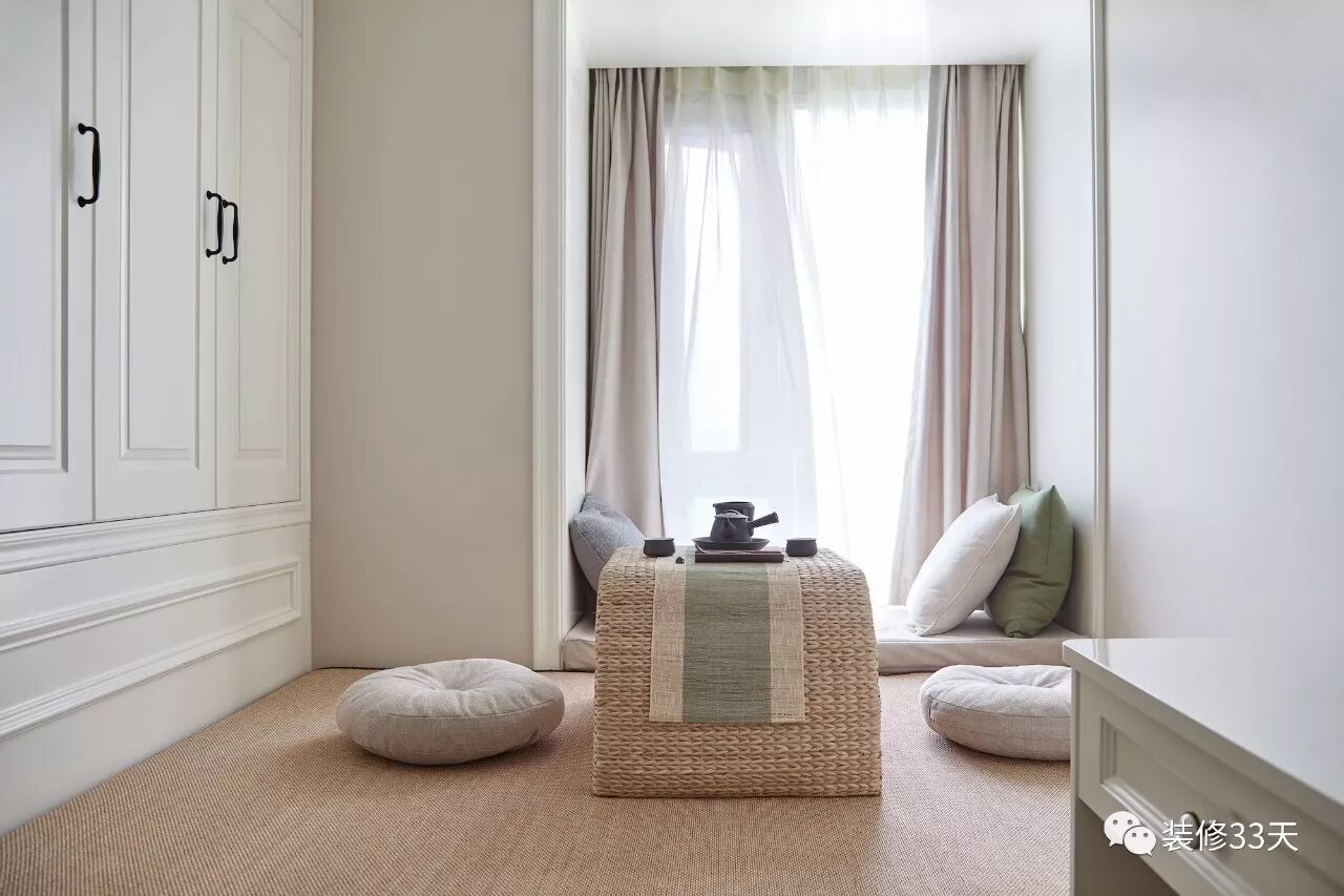 ▲ 木作榻榻米与储物柜体,布置藤麻制品,打造出休闲茶室,并兼做书房与临时客卧,功能多样