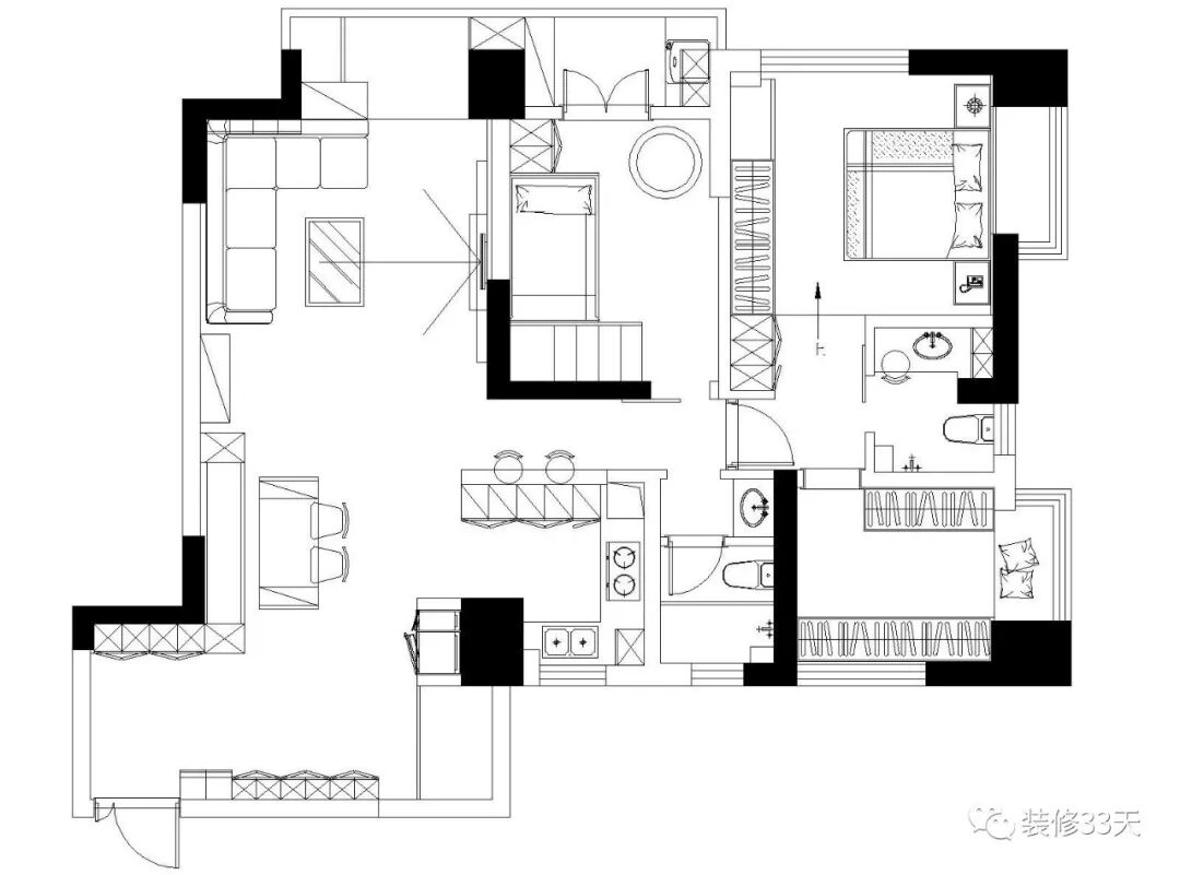 118平极简质感两室 低彩度黑白灰几何空间