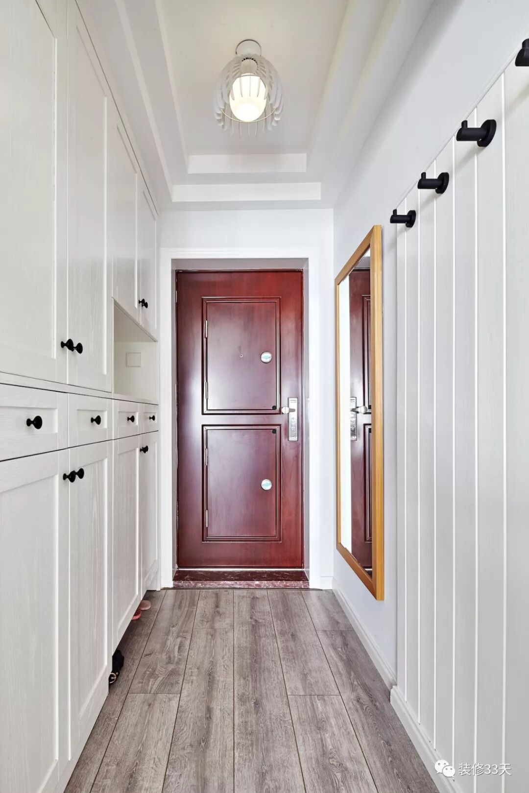 ▲ 建筑面积90平,造价33万(软硬装+家具家电),入户通体白色储物柜与挂钩墙镜设计,兼具美观与实用