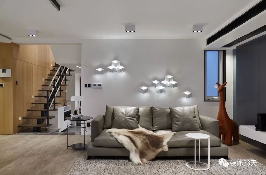 10▲ 沙发背景墙错落安装立体感壁灯,作为客厅辅助装饰照明