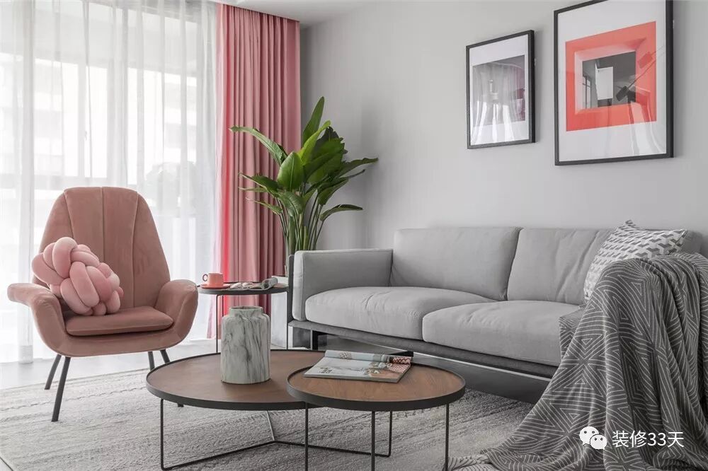 ▲ 不同色调的粉色在大面积灰色过渡下,显的和谐温馨
