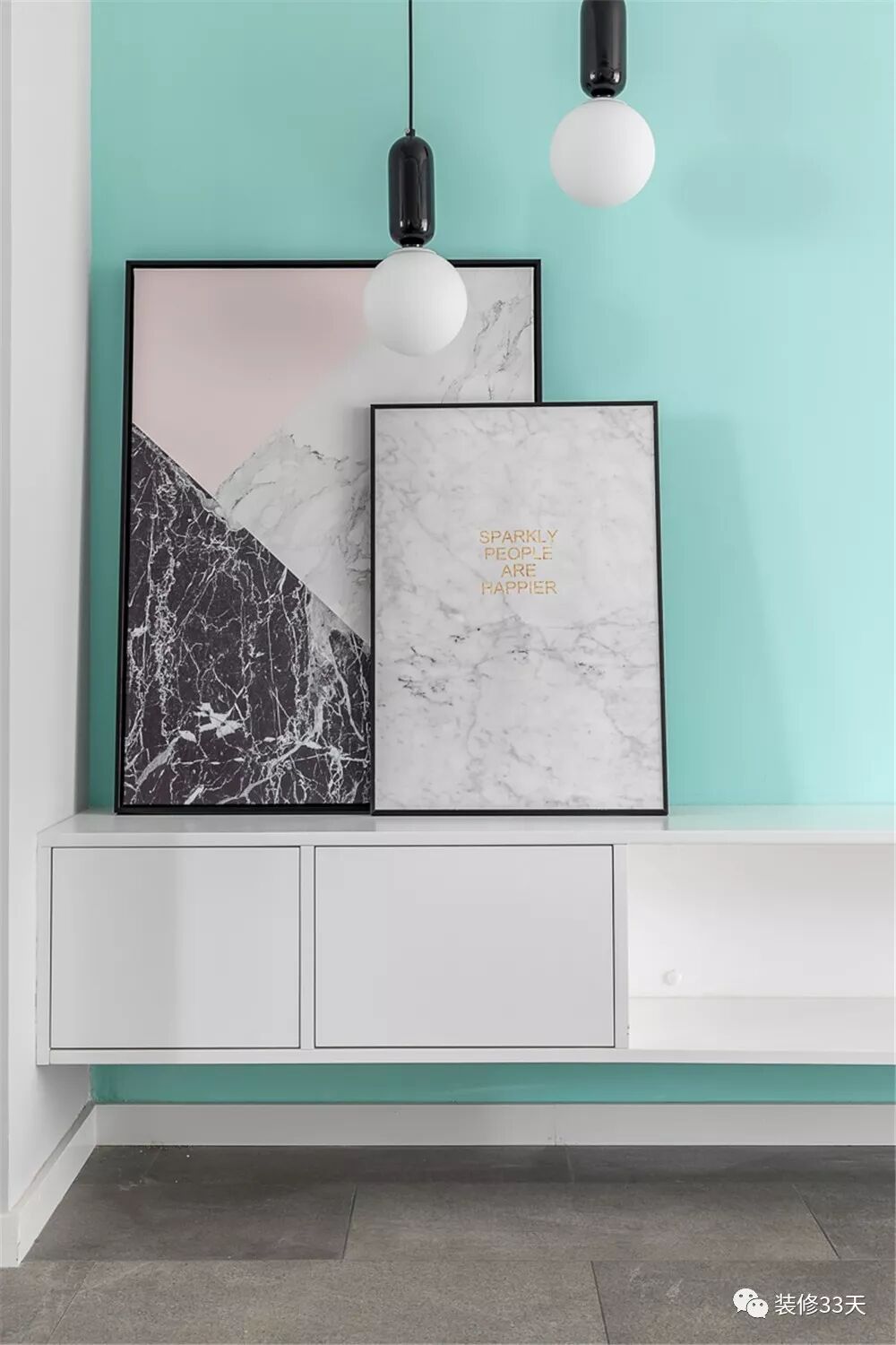 ▲ 建筑面积140平,硬装25万,总造价32万,入户架空收纳柜搭配清新墙面,给人轻松的归家感