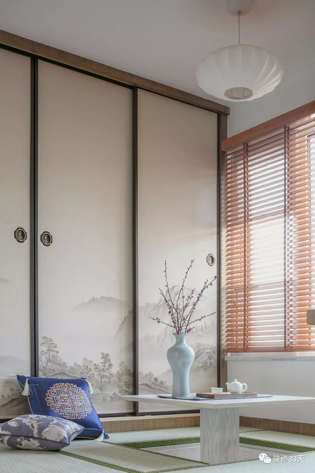 ▲ 茶室内部榻榻米地台,可升降桌,水墨画柜门作背景,在这看书,喝茶,小憩,舒适悠闲