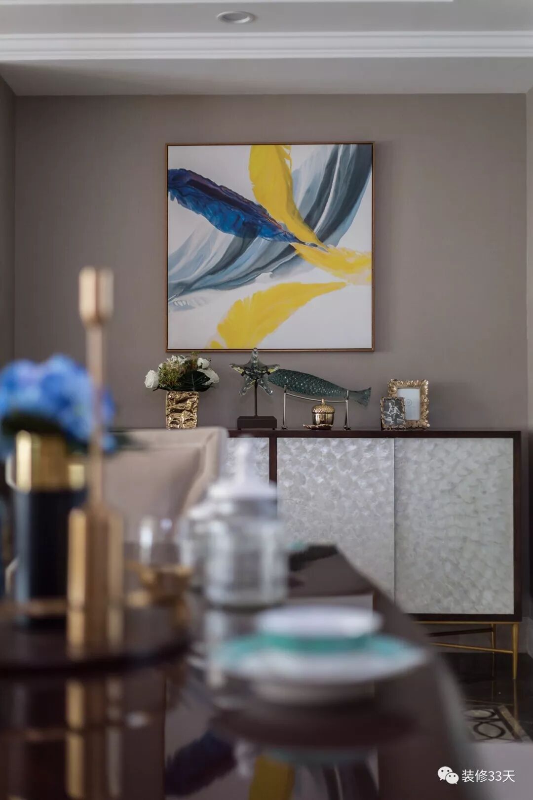 ▲ 设计感十足的装饰画与餐边柜,让餐厅空间瞬间提升档次