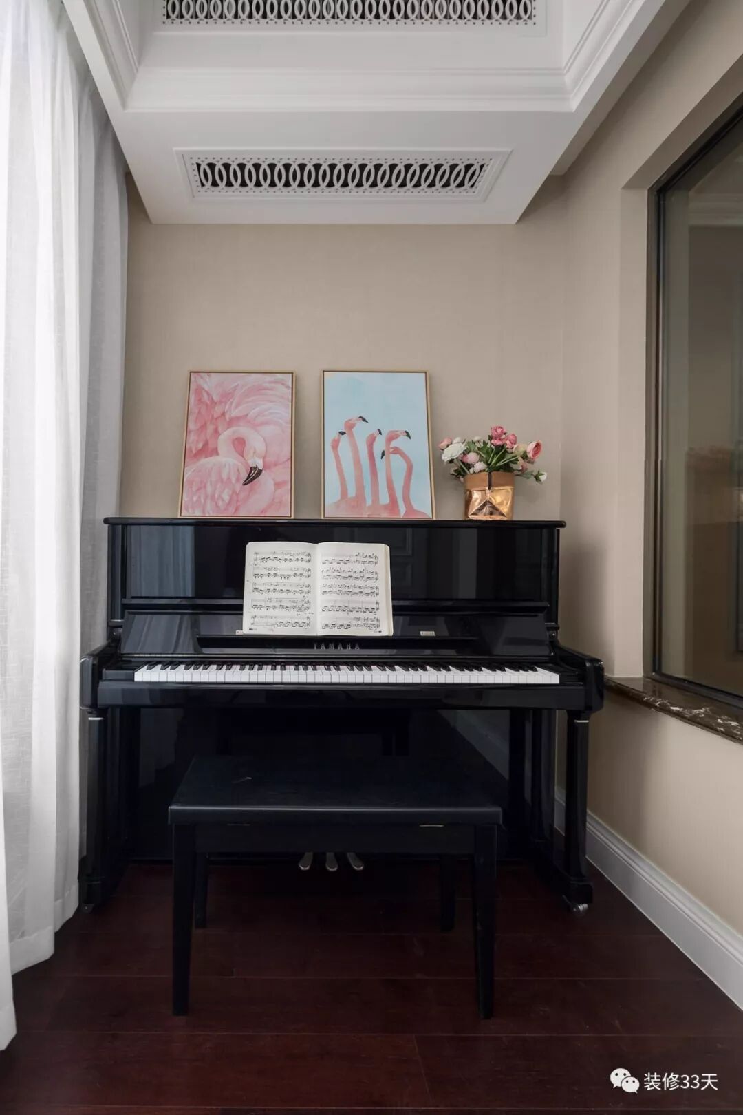▲ 琴房保持原有的装修,没有过多的修饰,简单用艳粉色装饰画来满足女孩的缤纷情调